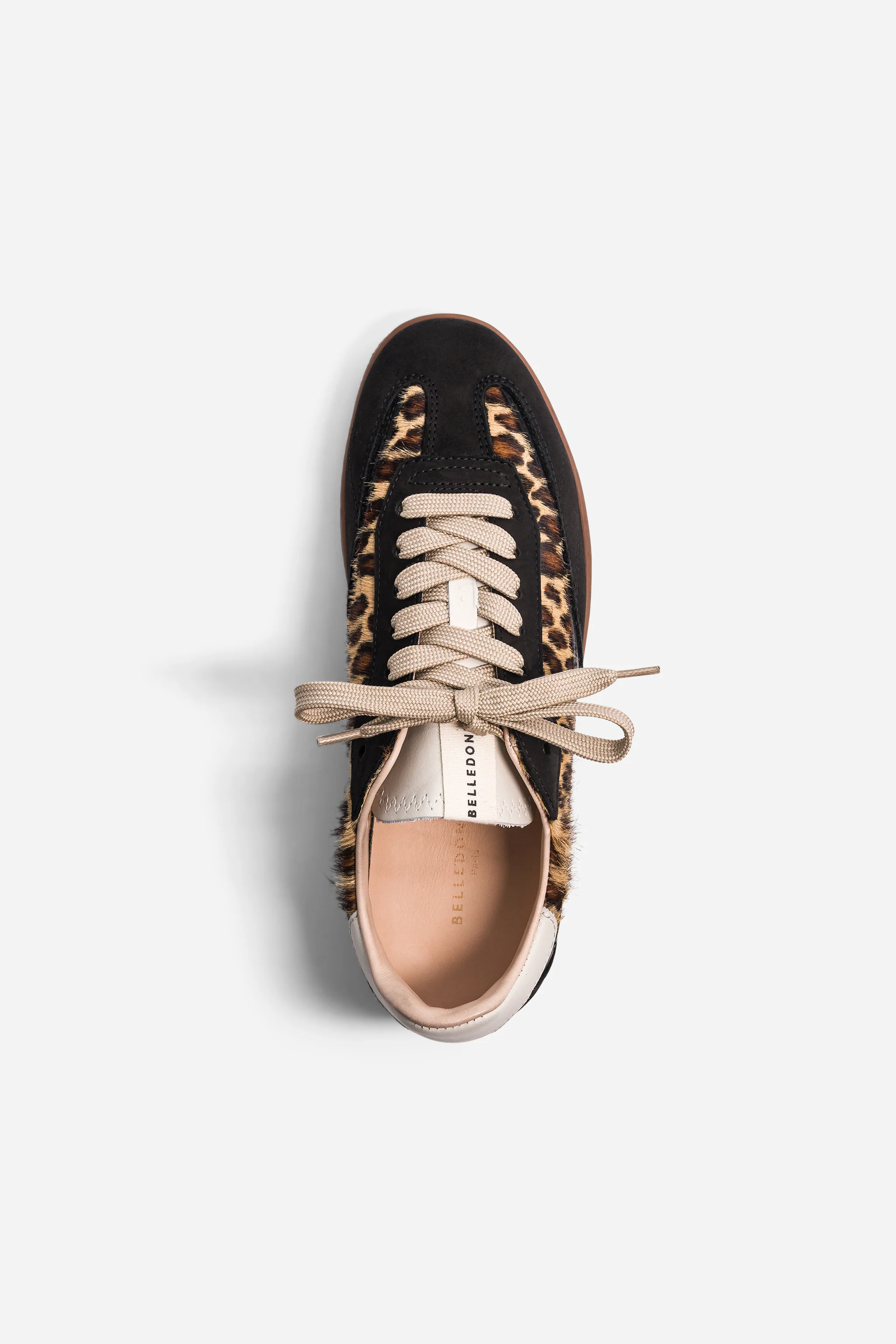 - Assemblage de cuir lisse et nubuck tannés en Italie et certifiés Gold par le LWG* et de cuir de vache de type "pony hair" avec impression léopard